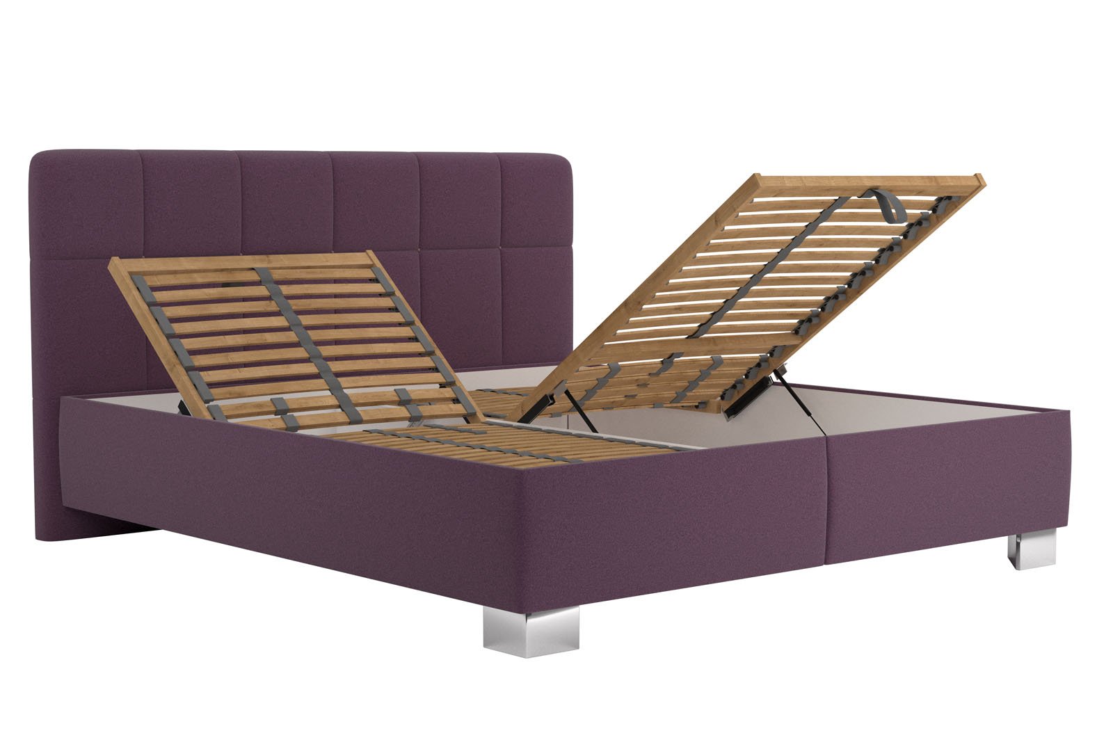 Úložný priestor lôžka sa otvára za pomoci plynových piestov od nôh postele.
