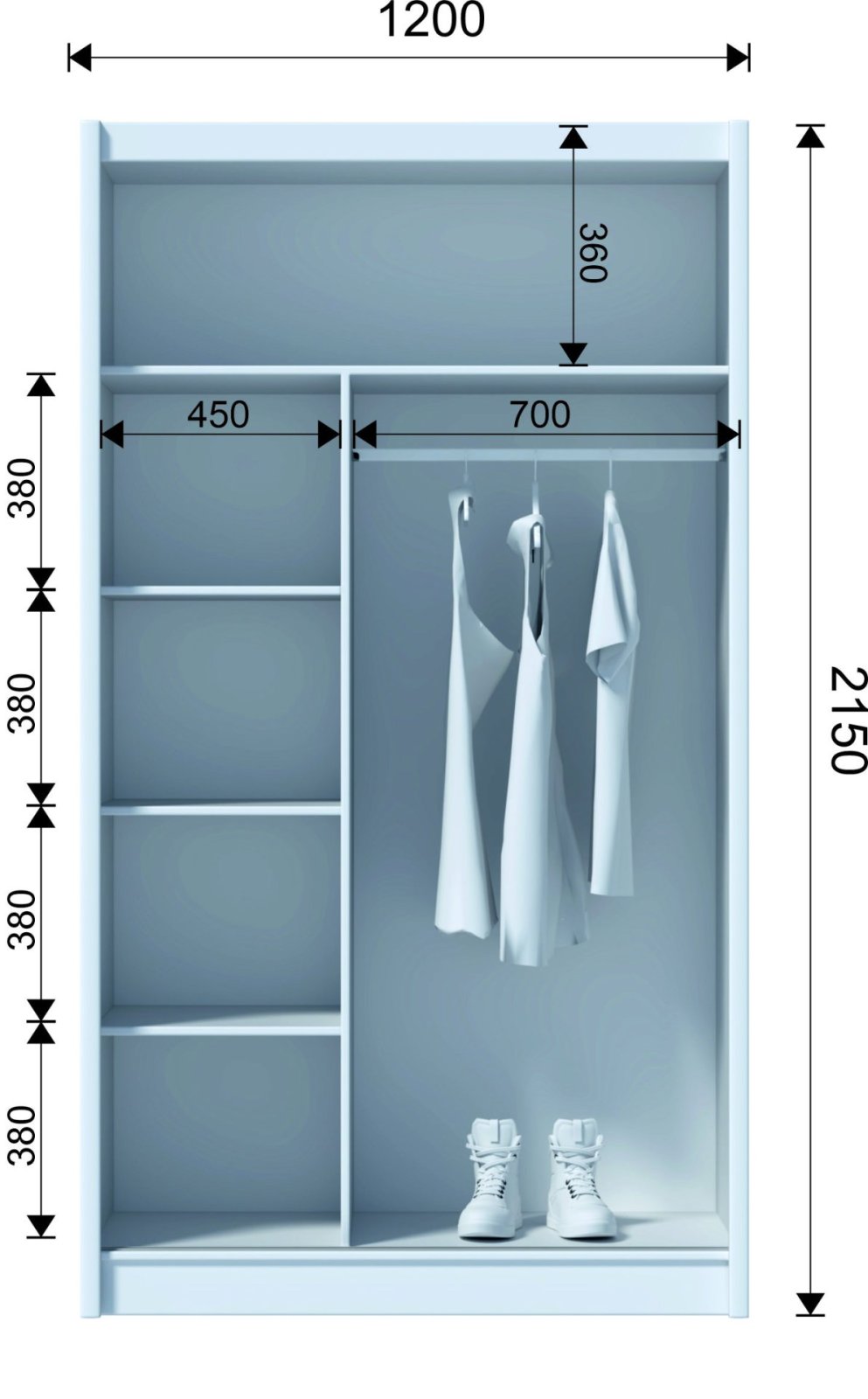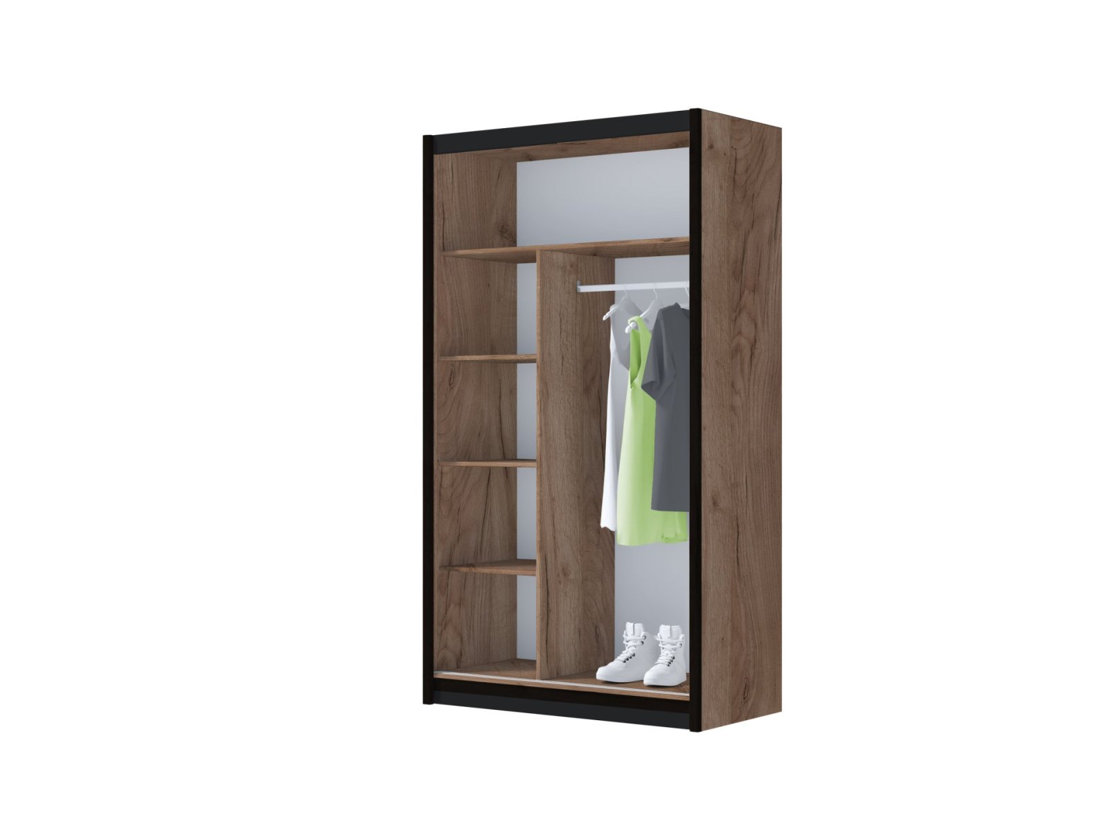 Priestrannosť a usporiadanie: S rozmermi 120x215x61 cm ponúka skriňa dostatok úložného priestoru. Vnútorné usporiadanie je vybavené poličkami a závesnými tyčami, ktoré umožňujú efektívnu organizáciu oblečenia a ďalších predmetov.