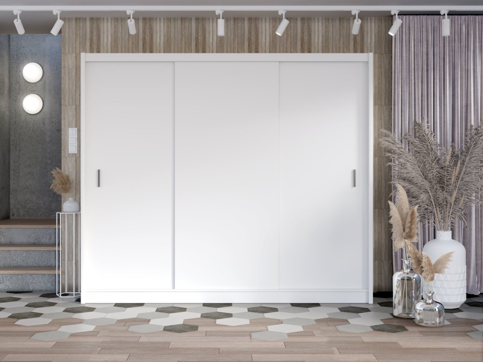Moderná a priestranná šatníková skriňa Oskol v bielom prevedení